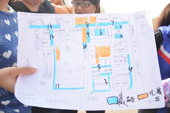 拾荒大赛以竞争比赛的形式增强大家的环保意识,呼吁广大同学节约资源、共建节约型环保型校园。活动过程中,采取“限时计分”, 37个小组的同学们首先通过寻找“通行证”,获取到体育场地参加诸如篮球、排球、踢毽子等比赛的资格。比赛获胜小组便有机会抽取工作人员手中的藏品单一张,依据藏品单提示信息寻找藏品、加分卡,分别计入20和5分的成绩。各小组成员分工以最快的速度找到通行证,比赛场地上大家你帮我助赢取比赛,以胜券在握的阵势寻找藏品单,凝聚着合作精神,渗透着环保意识。