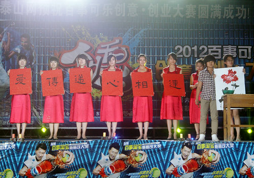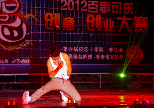 本次大赛围绕“创意”这一主题,以歌曲、舞蹈、创想类、聚爱类等形式激情呈现。2日晚,西校园操场被浓厚的青春气息包围着,闪亮的灯光、动感的音乐彰显着青春的色彩。在满场的期待中,大赛热烈拉开序幕。随后,或悠扬或清新的原创歌曲《枫叶》《我的眷恋》等、或动感或古典的原创舞蹈《洋葱》等、诙谐幽默的聚爱类婚庆方案、创意无限的创想类创业方案……轮番上阵,将大赛推向一个又一个高潮。期间,多达六次的抽奖活动更为比赛锦上添花,印有迈克尔.杰克逊头像的限量版百事可乐及带有足球明星亲笔签名的百事可乐限量版T恤使观众大饱“口”福。