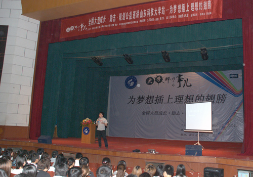 5月24日晚,由校区(学院)团委主办的大型“成长·励志·规划”巡讲成功举办。围绕“为梦想插上理想的翅膀”,新东方教育科技集团前途出国咨询公司总裁助理、留留学网创始人韦晓亮结合自身人生经历,就“大学那些事”之“我的大学”、“英语那些事”、“留学那些事”等问题,以幽默诙谐的语言对现场千余名同学进行了一次人生洗礼。