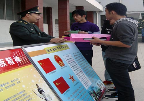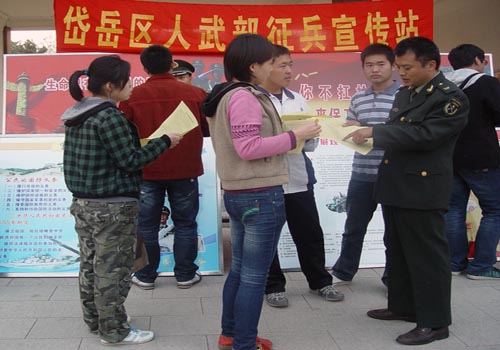 “学文读理为成才,尚军从武为国防”,在往年入伍光荣响亮口号的感召下已有不少同学踏入军营,开始了他们锤炼成才的军旅生活。在校区(学院)的大力支持下,2011年度的高校征兵中又将有一批大学生踊跃步入军营,投身现代化的国防事业,在此预祝此次高校招生圆满完成。(作者:张元美 燕海飞 摄影:蔡军宇)