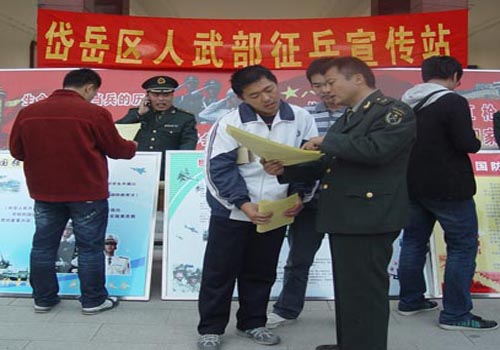 随着2011年度泰安市高校征兵工作全面展开,10月12日,岱岳区征兵办派出工作人员在校区(学院)西校园设立征兵宣传点。校区(学院)学生处、保卫部积极响应,配合征兵办工作人员向广大同学发放宣传单,耐心讲解征兵的相关事宜。校区(学院)众多学生饶有兴趣的前来咨询聆听。