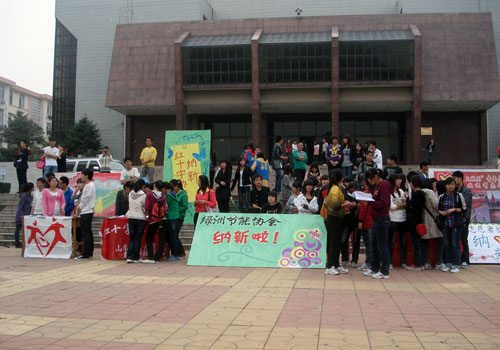 10月11日,由校区(学院)团委主办、校区(学院)学生会社团部承办的社团纳新活动在西校园礼堂前隆重举行。二十余个社团组织共同参与,千余名新生前来报名咨询。本次社团统一纳新活动,旨在规范纳新现状,使广大新生更加全面了解各社团文化,给他们提供一个自主选择心仪社团的机会。