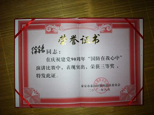 6月10日,为庆祝建党90周年,纪念《国防教育法》公布施行10周年,由泰安市泰山区国防动员委员会主办、山东农业大学协办的驻泰城高校“庆祝建党90周年‘国防在我心中’演讲比赛”在山东农业大学隆重举行。