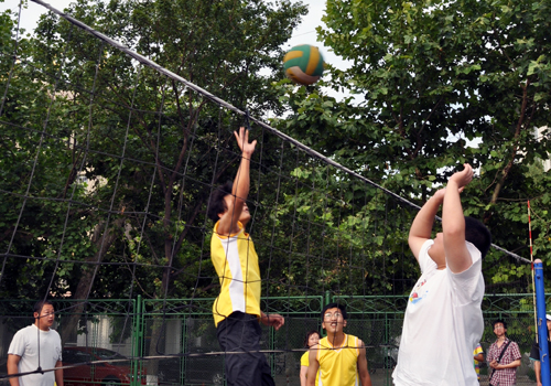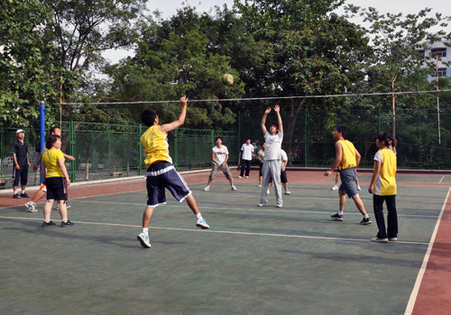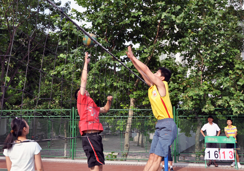 在半决赛中,由洒艳老师率领的代表队和张裴老师率领的代表队均直落两盘分别战胜由韩子玉老师率领的代表队和韩威老师率领的代表队,顺利晋级决赛。决赛中,由洒艳老师带领的代表队以25:21的比分率先拿下一局,两队精彩的扣杀,积极的救球,不时博得同学们的阵阵掌声。由张裴老师带领的代表队也不甘落后,利用对方的频频失误,以25:22的比分扳回一局。进入决胜局,双方你来我往,始终把比分紧咬着,由于比赛激烈,双方的体力也消耗殆尽。最终,经过激烈角逐,由洒艳率领的代表队以15:12的比分战胜对手,从而以总比分2:1夺得比赛冠军。