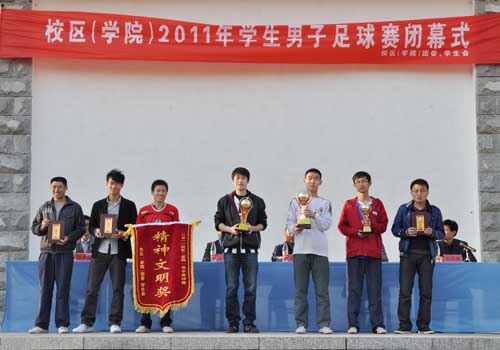 闭幕式上,校区(学院)学生处副处长王靖磊指出,一个全面发展的当代大学生,应该是包括身体素质在内的各项素质和谐发展,学校培养的人才不仅应具有高尚的品格、渊博的学识、创新精神和实践能力,还应该拥有强健的体魄。本次足球赛既是对学生运动技能及团结精神的一次全面检查,也培养了同学们不断拼搏、努力奋进的精神。他希望同学们以这次比赛为契机,加强体育锻炼,以饱满的热情投入到以后的学习、生活中,力争取得更加辉煌的成绩。