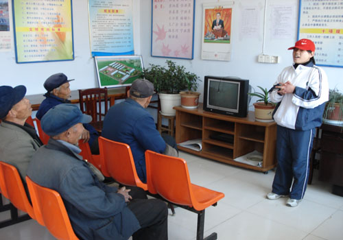 踏着春天的节拍,迎着春风的微拂,校区(学院)青年志愿者协会一行来到天平敬老院将温暖传递。负责人孙庆国对同学们的到来表示欢迎,他向同学们介绍了敬老院的概况,带领他们参观了娱乐室等场所。完备的设施,整洁的环境,都使同学们赞叹不已。报告厅内,志愿者还与老人们共同听取养生报告,看老人们分享自己的养生心得。随后,志愿者们分为两组,女生负责打扫房间的卫生,男生则到附近的水井提水浇树,忙的不亦乐乎。同学们在服务之余也与老人进行了心灵的交流,和他们聊天并表演了精心准备的节目。歌曲《游击队歌》再叙战斗热情,兔子舞展现青春活力,更有冷笑话让人冷并快乐着。持续一个多小时的慰问活动接近尾声,但同学们的热情不断,他们说:“为老人奉献我们的一份力,我很幸福”。