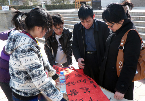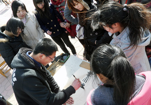 3月15日,由校区(学院)团委主办、学生会承办的“古韵今风”之“笔精墨妙”书画大赛于西校园礼堂前顺利举办。