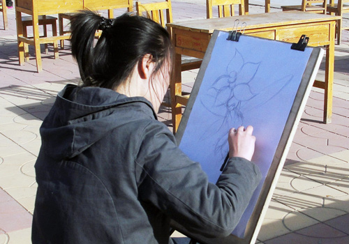 本次比赛涵盖硬笔、软笔书法及绘画三项活动,以现场才艺展示的方式进行。春风袭袭,在校区(学院)学生会的协调下,60余名同学积极上阵,各显身手。“天道酬勤”“读书破万卷,下笔如有神”等以“激昂青春”为主题的名言纷纷成为书法选手的首要选择;引人入胜的水彩画,清新雅致的花鸟画、栩栩如生人物素描亦彰显出“春意盎然”的绘画主题。在流动的人群中,选手们沉着,冷静,应对自如。其中,软笔书法的一位参赛者格外引人注意,他挥洒自信、遒劲有力的小篆赢得围观同学的一致好评。