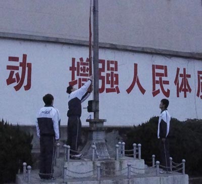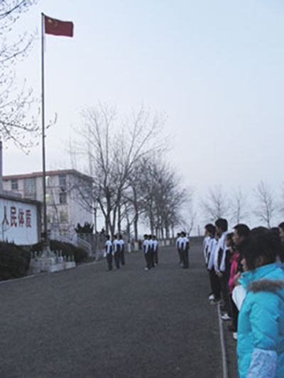 国旗队整齐而豪迈的脚步声揭开了仪式的序幕。在激昂雄壮的国歌声中,鲜艳的五星红旗迎着晨风冉冉升起,全体师生肃立在操场上,庄严地向国旗行注目礼。国旗下,财政08—1班的于萌萌同学做了《把握青春,梦圆科大》的主题演讲,回顾2010年校区(学院)取得的丰硕成果,号召同学们把握现在,展望未来,做一个负责任、重细节的文明大学生,演绎精彩人生。同学们秩序井然、精神抖擞,以国旗为证,立志用自己的成绩为即将到来的科大60年校庆献上贺礼。