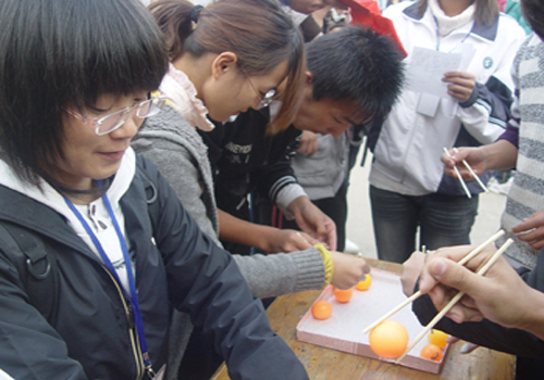 本次“我运动,我健康,我快乐”主题趣味运动会在同学们的热烈欢呼声下拉开序幕。整场比赛共分“花样跳绳”“筷子夹乒乓球”“排球大战”三个项目。每个项目都有其特定的评分标准,评委团由协会工作人员及现场观众担任。活动伊始,参加“花样跳绳”的同学们便积极迅速地投入到比赛中。他们身手灵敏、步伐矫健,在保证速度的同时不断变幻着样式:“正手翻”、“反手翻”、“带人”、“套花”等,场中花样百出,惹得观众应接不暇,现场掌声连连。与此同时,“筷子夹乒乓球”项目也进行得如火如荼。轻盈小巧的乒乓球在同学们手中变得规规矩矩,虽然受到风力影响,但同学们都凭借自身平衡能力将手中的乒乓球成功的转移到指定地点。在随之而来的“排球大战”中,同学们顶住压力,灵巧避开迎面奔来的排球,每次的“化险为夷”都让观众们“心惊胆战”。赛场中,欢呼声、加油声此起彼伏。最后,协会负责人依据选手们的表现及评委们的打分评选出了跳绳冠军、排球冠军和团体冠军,并予以奖品鼓励。