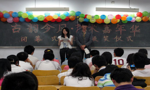 雨后的空气凝聚着泥土的清香,五彩的气球装点着炫丽的舞台,同学们脸上洋溢着青春的笑容。在主持人的介绍下,参加笔精墨妙·书画比赛、一拍即合·摄影比赛、毛遂自荐·个性名片设计比赛、棋高一招·棋类比赛的56位获奖选手依次上台领奖。伴随着同学们的热烈掌声,获奖选手们微笑着接过荣誉证书和奖品,深深地沉醉在无限的喜悦之中。校区(学院)学生会副主席孙雅娟致闭幕词,她激动的说道:“感谢同学们的积极参与,感谢同学们的精彩才艺,相信在大家的支持下,下一届的活动更精彩。”