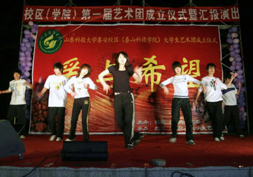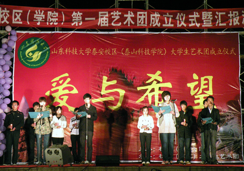 校区(学院)首届大学生艺术团成立仪式暨汇报演出紧紧围绕“爱与希望”的大主题,艺术团成员在呈现精彩节目的同时,也表达了为祖国祝福、为灾区祈福的情愫。整场晚会,不仅展现出校区(学院)学子青春激昂的风采,更表现了学子们关注社会、热爱祖国的责任感。在此责任感的引导下,校区(学院)学子将竭尽所能锻炼自己,以更好地回报社会,回报母校。(作者:甄惠 于丛丛 侯德健 摄影:房毅)(责编:董钦玲)