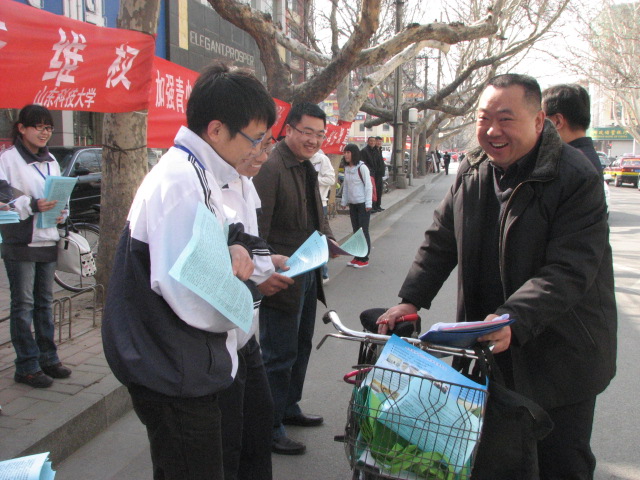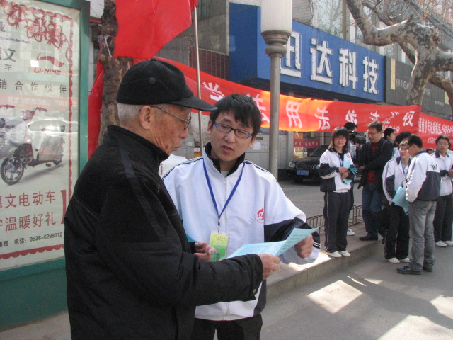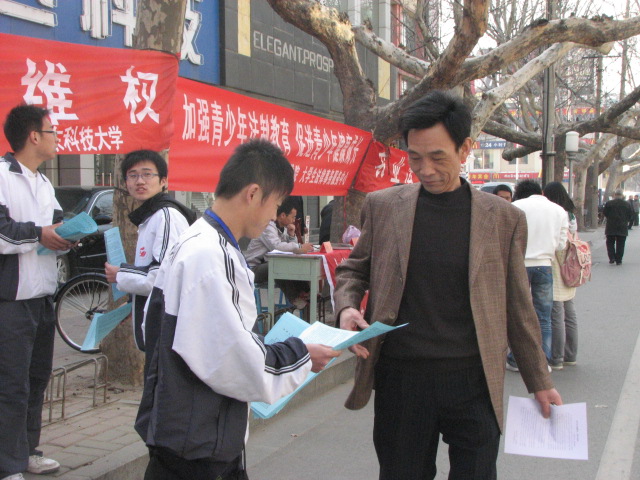 春风送暖,百花盛开,42日上午,响应泰安市政府的号召,科大师生一行16人,来到市青年路开展了普法宣传活动。