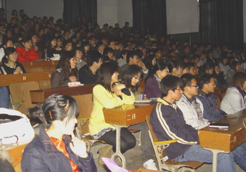 活动开始,一段感人的视频引出了今日访谈的主角——叶蔚与汤建泉老师。针对“掌控情感,规划人生”的主题,叶老师结合她自身的经历与大家进行交流。访谈现场,叶蔚老师一脸温和的笑容,与同学们分享他们的故事:学业有成,灾难突临,面对男友恶疾,她用执着坚定的爱,帮助着丈夫度过难关,一步步走向人生的巅峰,成长为一位盲人企业家。而在帮助丈夫成功的同时,叶老师在个人学术领域也创造出了骄人的业绩。“我不是女强人,我只是强人背后的女人。”当问及女强人观念时,叶老师如是说。而他们夫妻面对灾难的从容与坚定深深地感动着大家,现场气氛愉悦而温馨。