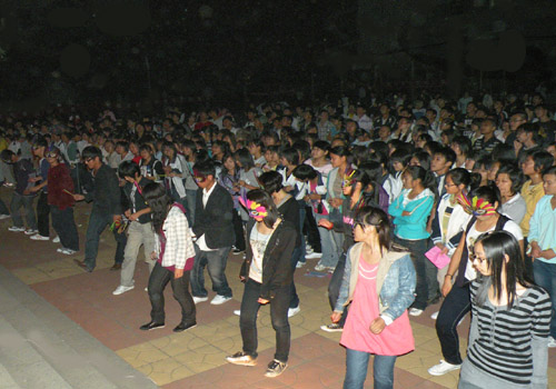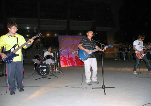虽是一年秋意深,却难挡同学们似火的热情,今夜的礼堂广场成了欢乐的海洋、舒展个人情感的舞台。经过校区(学院)学生会的精心准备,广场被装点得焕然一新、喜气洋洋。晚会开始前,广场上已经是人头攒动,热闹非凡。伴随着动感十足的背景音乐、活力四射的现代舞表演,新学期周末文化广场晚会拉开了序幕。在各个节目领舞的带动下,同学们不约而同地加入到舞池中来,尽情地舞蹈,尽情的欢唱,绽放着青春的魅力,阐释着对大学生活美好的憧憬。《你那么爱她》、《遗失的美好》等一首首美妙动听的歌曲萦绕在文化广场的上空,唱出了当代大学生的心声,寄托了他们对美好生活的向往和追求。现场气氛十分热烈,高潮迭起,掌声、欢呼声不绝于耳,吸引了无数新生热情参与。高校音乐联盟亦倾情献映,为同学们带了无尽的欢声与笑语。