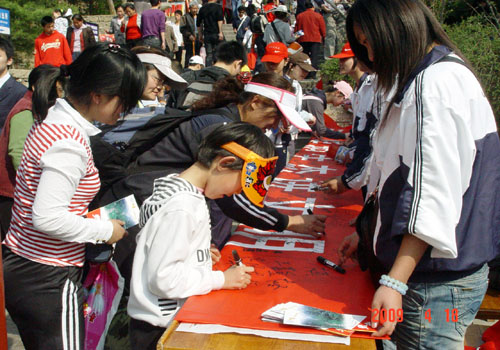 本次活动以“爱护环境治污染,保护生态讲文明”为主题。在青年志愿者的积极宣传下,活动反应强烈,签名的人络绎不绝,既有年上九旬的老人,也有刚刚上小学的孩子。此次签名还有几位外国友人,他们高度赞扬了我们的环保意识,并表示能参加此次签名活动感到非常的荣幸。十米长的红幅上签的密密麻麻,见证了每一个人的承诺。此外,年轻力壮的、而立之年的、不惑之年的……他们均表示非常愿意一起投入到我们的环保活动中来,从自我做起,从身边的小事做起,努力教育好下一代,让其成为爱护环境的社会文明人。最后,泰山风景名胜管理委员会、红门管理区相关负责人对志愿者们的到来表示感谢,并与志愿者们合影留念,环保签名活动圆满结束。