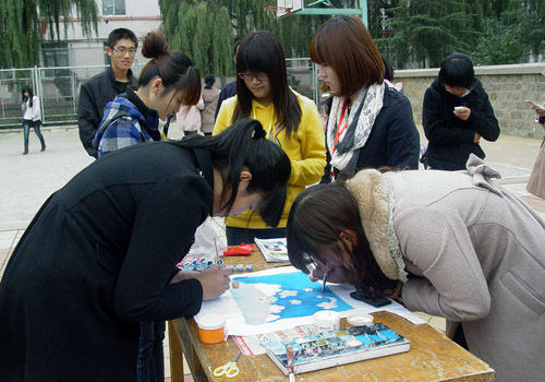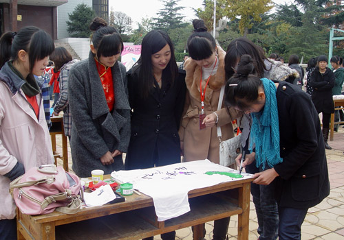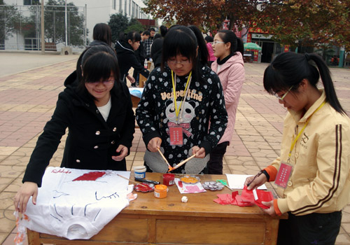 经校区(学院)学生会的前期有力宣传和精心筹划,此次历时11天活动取得丰硕成果并得以有序进行。本次仪式分两个环节进行——手工艺品展和T恤DIY。手工艺品展桌上摆放的十字绣、编织品等类型多样,别具一格。十字绣《八骏图》——奔腾的骏马,鬓毛飘逸,栩栩如生,同学们赞不绝口。紧随其后,参与T恤DIY现场作画的同学也在紧张的设计着。他们心灵手巧、创意十足,各种图像瞬间跃然T恤,惹得在场观众跃跃欲试。一幅幅匠心独运的作品紧扣“我爱科大”的主题,展现着作者对母校的热爱之情。其中,苍劲有力的毛笔字映衬下的金菊深深表现出科大傲然的身姿和独特的气质,散发出浓浓的文人笔墨气息。最后,经过严格筛选,经管系岳公英的《马到成功》十字绣、王晓彤的灰色围巾、张宁的花开富贵荣获手工艺作品一等奖,经管系田甜、关艳慧摘得T恤DIY大赛桂冠。另外,比赛各设二等奖若干名。