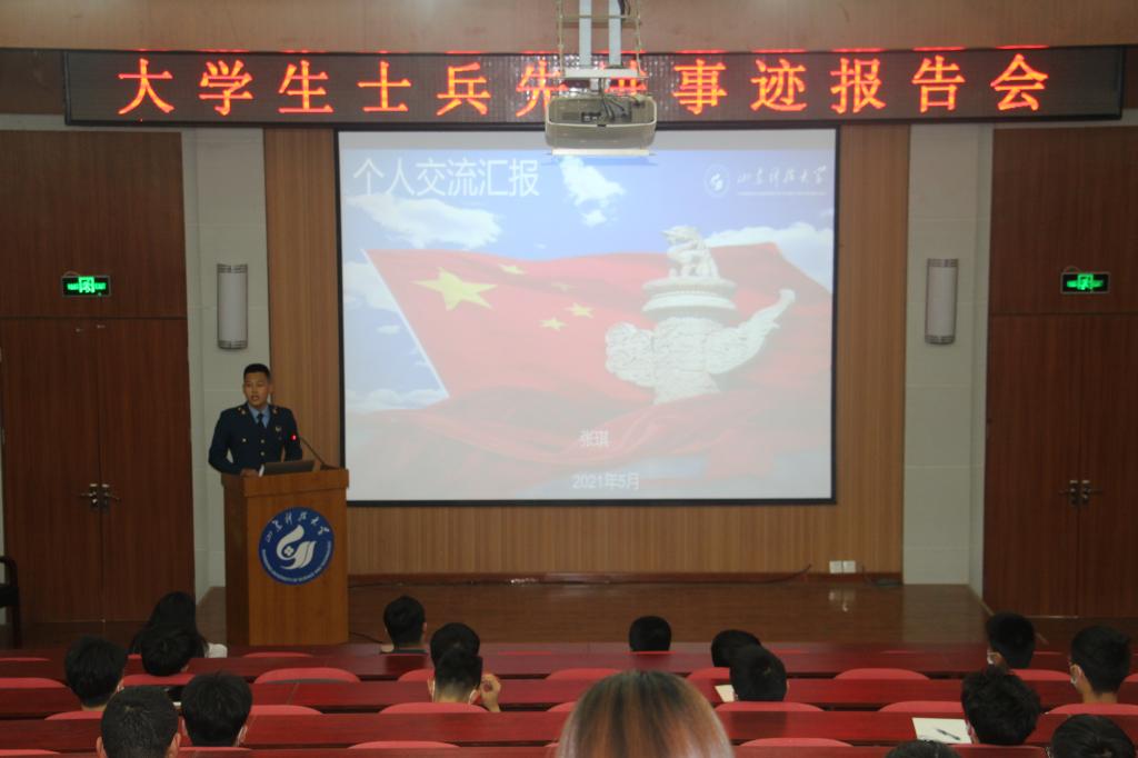 5月25日、26日下午,学团工作部分东、西两个校园举办了大学生士兵先进事迹报告会。泰山区人武部军事科科长朱元钊参加报告会并进行了政策宣讲。各学院(部)征兵负责老师、近四百名学生参加了报告会。