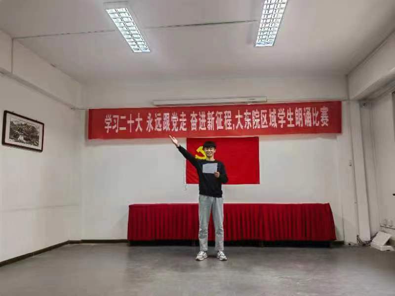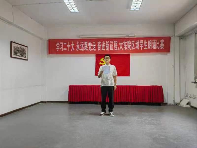 乘着党的二十大的东风,歌颂党的伟大成就。为增强同学们的爱党爱国情怀,提高当代大学生的思想觉悟,10月28日,校区团委在大东院区域组织开展了主题为“学习党的二十大,永远跟党走,奋进新征程”的朗诵比赛。活动邀请到了校区团委书记侯静娴及值守老师作为评委。