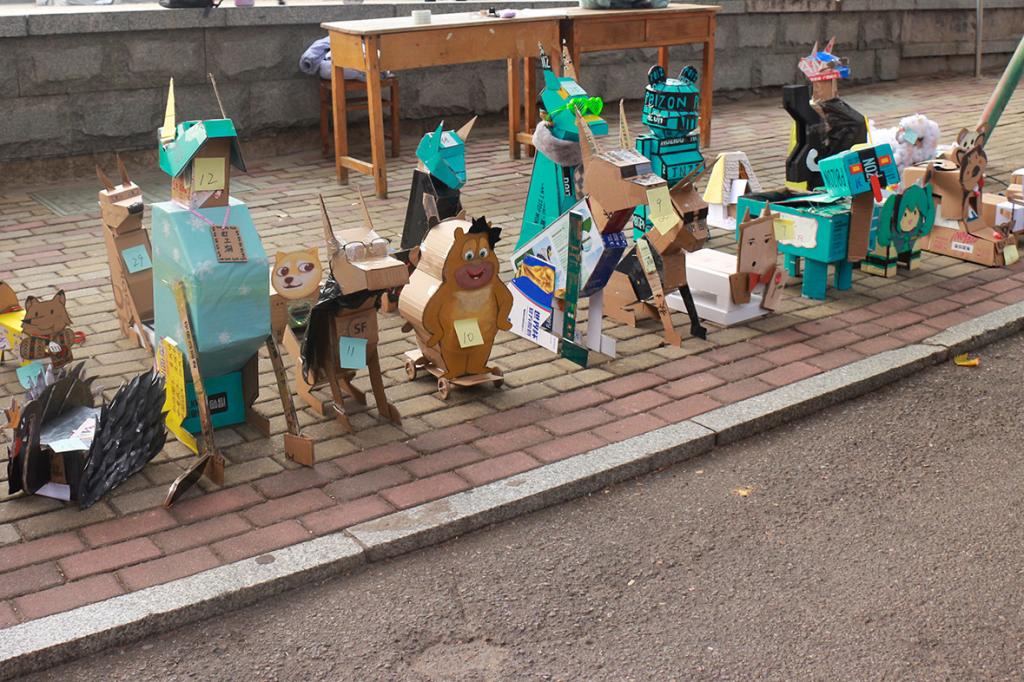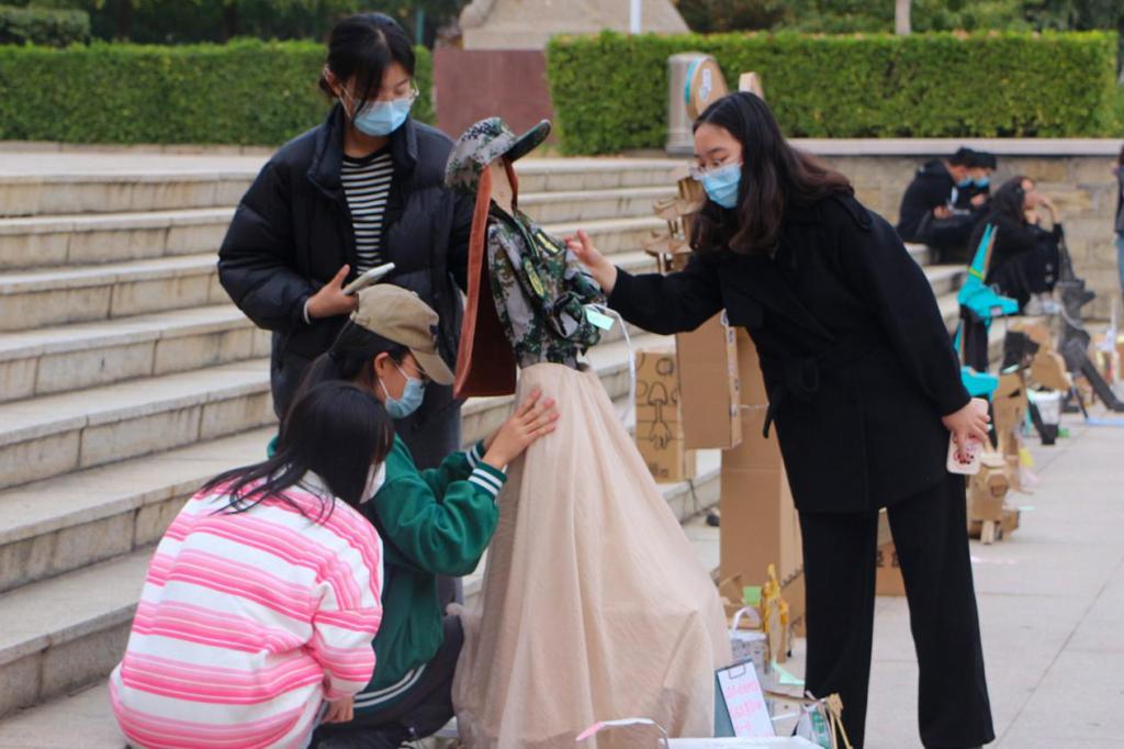 纸盒创造艺术品,环保节约我能行。近日,由校区团委主办、校区学生会志愿实践部承办的“纸盒改造”比赛分别在西校礼堂前和东校园林荫道举行。