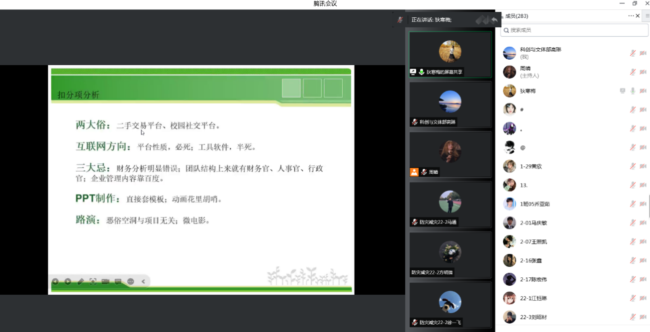 狄寒梅从“什么是创新能力”、“提高创新能力的途径”、“个人心得体会”三个方面耐心细致地和同学们进行了分享,使同学们对科技创新比赛有了更加全面的了解和认识。随后高琳对最新的科创比赛认定文件和软件著作权的申请流程进行了讲解,并对学生参加科创比赛中的常见疑惑点进行了详细的解答。