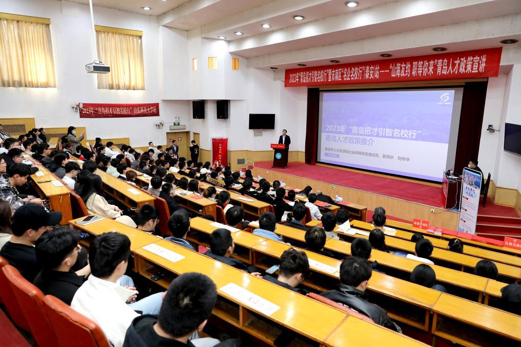 3月4日,青岛市人力资源和社会保障局在校区成功举办2023年“青岛招才引智名校行”暨市南区“名企名校行”(泰安)站--“山海友约  职等你来”青岛人才政策宣讲会。