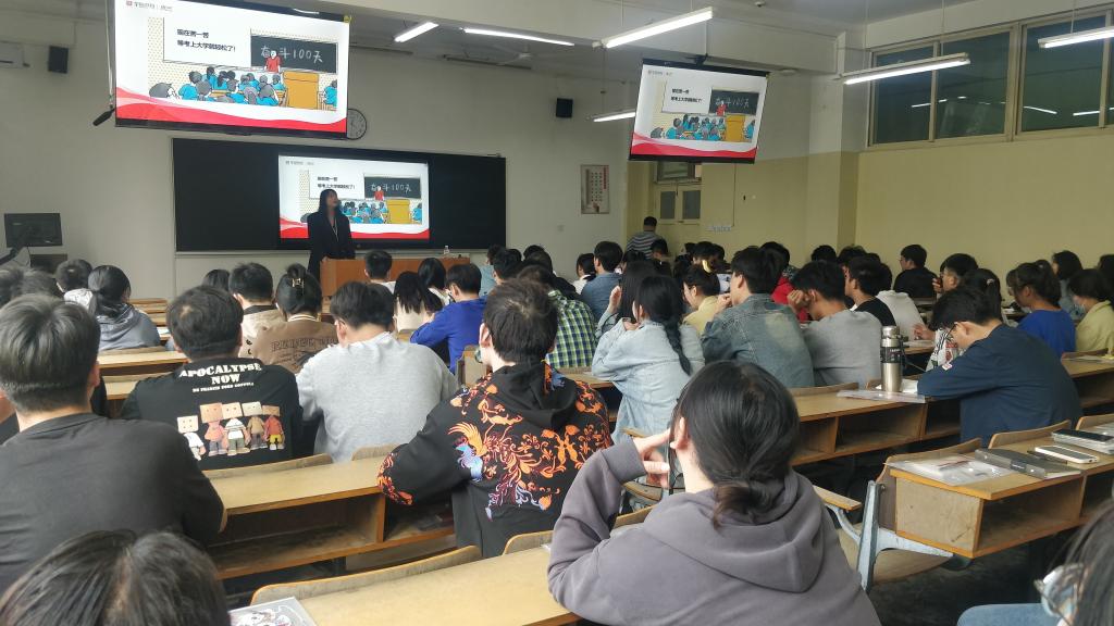 李娜以《高质量就业—公务员考试知多少》为题,从“跟随大数据选择高质量就业国考”“省考、选调生知多少”“高效备考,成功上岸”三大方面向与会学生分析了近三年毕业生的就业形势及就业去向,讲解了各级各类公务员、事业编情况,解答了与会同学针对考公考编的各种疑问。