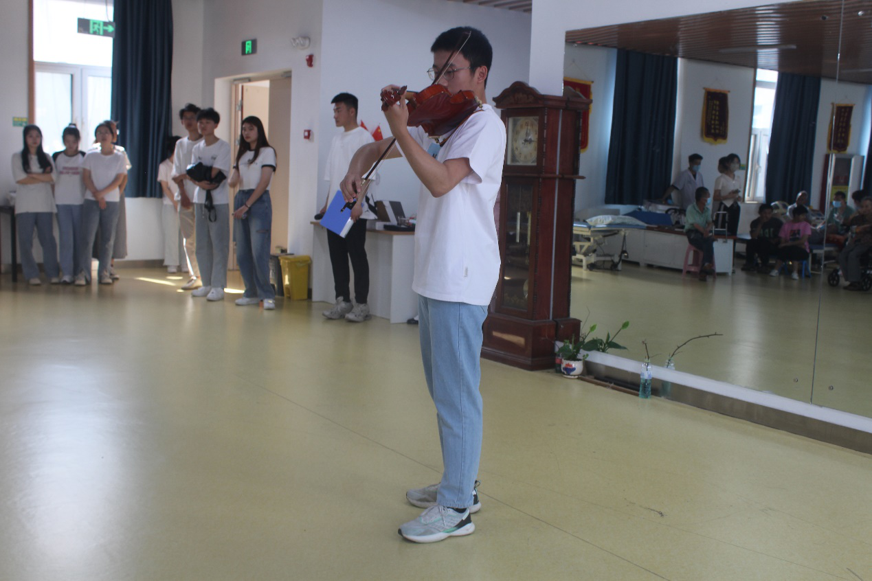 表演前,同学们贴心地给爷爷奶奶们分发了水果。随着主持人宣布活动正式开始,校区学子带来了专为老人们准备的精彩节目。在优美的舞蹈中,老人们随着音乐跟着一起打节拍;在欢乐的小品中,他们露出了开心的笑容。同学们用自己的青春活力给老人们带去了快乐与温暖。