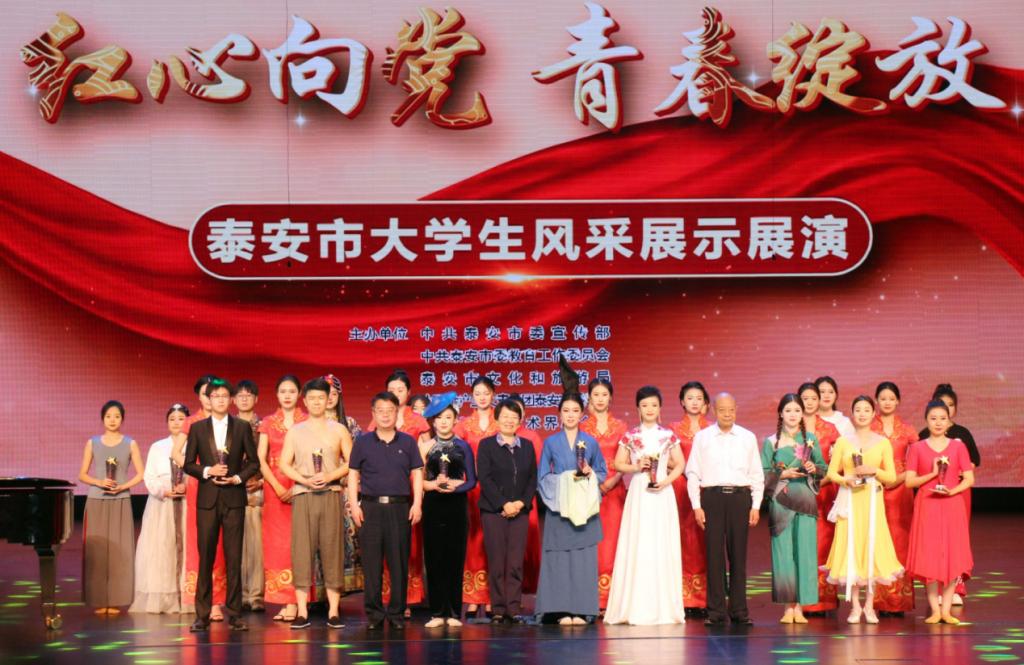 5月30日下午,“红心向党 青春绽放”泰安高校大学生风采展演在市文化艺术中心保利大剧院圆满落下帷幕。我校推报的两支舞蹈《只此青绿》《花腰傣》均荣获一等奖,是本次展演唯一获得双一等奖的高校。