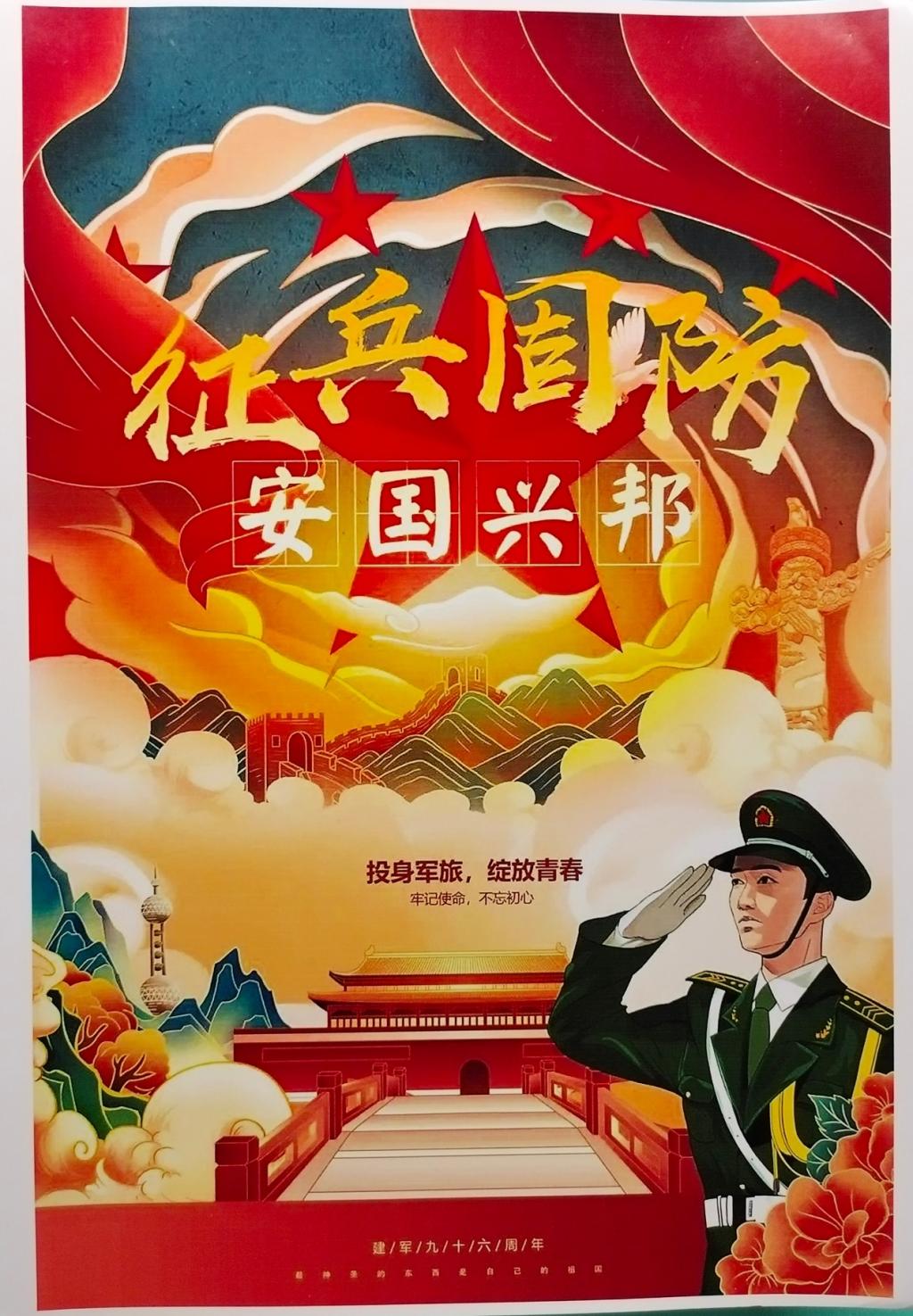 近日,为营造浓厚的参军入伍氛围,动员更多优秀大学生报名参军入伍,校区大学生国防教育协会举办第一届“国防有我,不负韶华”征兵宣传海报设计比赛。