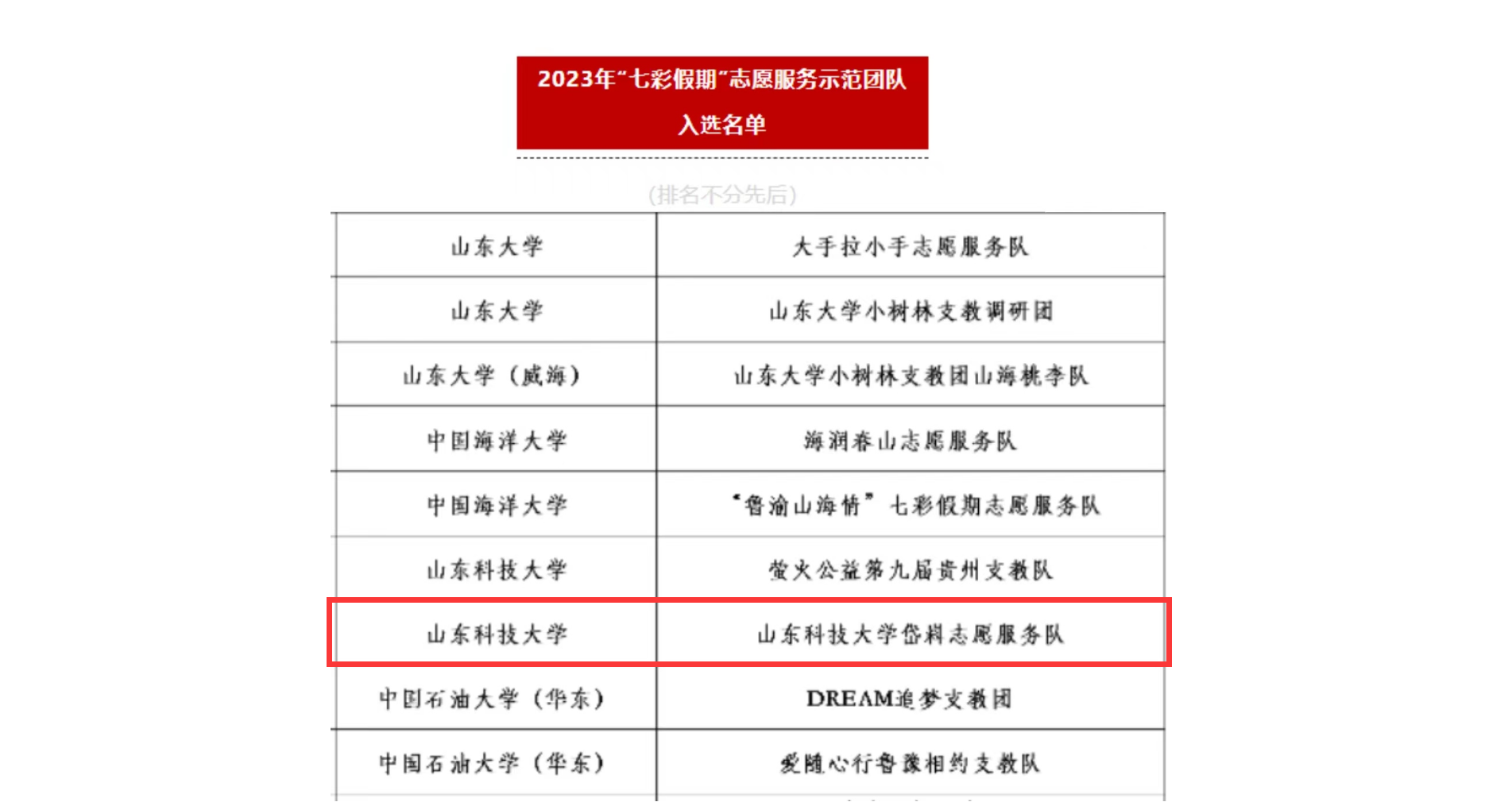 近日,共青团中央、中国青年志愿者协会相关部门联合公布了2023年度“七彩假期”志愿服务示范团队名单,泰安校区团委指导的3044永利集团官网岱嵙志愿服务队榜上有名。这也是泰安校区连续第三年获批国家级大学生社会实践及志愿服务队伍。