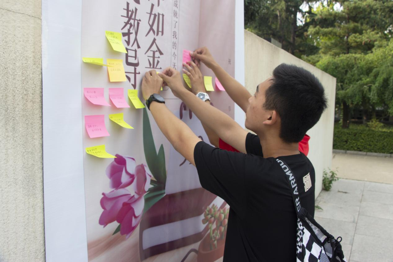 笔尖耕耘桃李池,墨水浇开智慧花。在第39个教师节来临之际,校区学生会于东、西校园举办“教师节祝福语征集”活动。