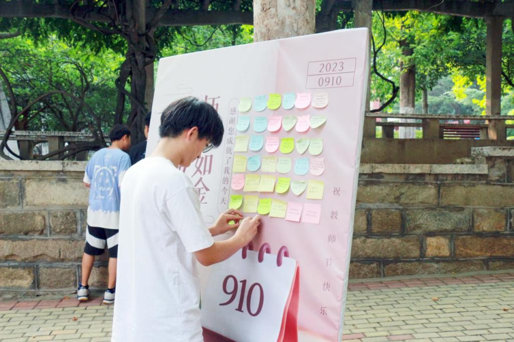 一桌一讲台,一师一生情。通过举办此次祝福语征集活动,向我们可亲可敬的老师表达真挚的感激之情,感谢老师的谆谆教诲与殷切关怀。(文:陈云志 图:陈科羽 吕辰宇)