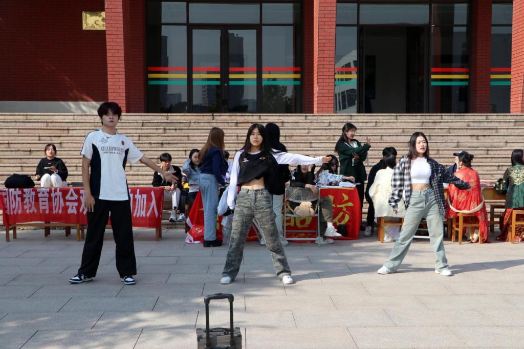 活动现场,各社团积极进行宣传纳新,充分展现社团文化魅力。青悦酷坊艺术社悠扬的歌声奏响整个活动场地,舞蹈随机表演嗨翻全场;熙悦传统文化研究社成员们身着精美的汉服亮相,翩翩起舞,惊鸿岁月,为同学们带来一场视觉盛宴;滑羽协会轮滑健将们在场地中央灵活飞驰,吸引不少同学驻足观看;武术社刚劲有力、行云流水般的武术表演,让人热血沸腾。所有社团都认真细致宣讲、展示特色亮点,可谓星光闪耀、魅力无穷;同学们在喜爱的社团前驻足、咨询,踊跃加入心仪的社团。