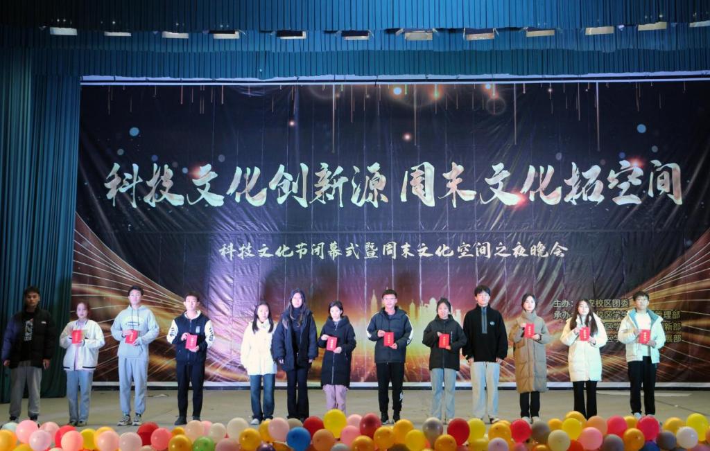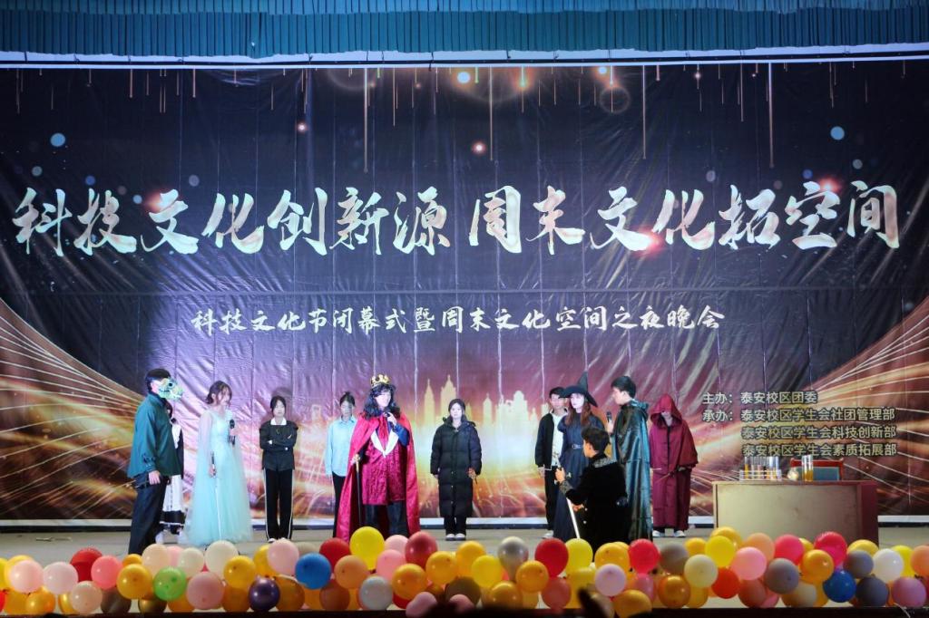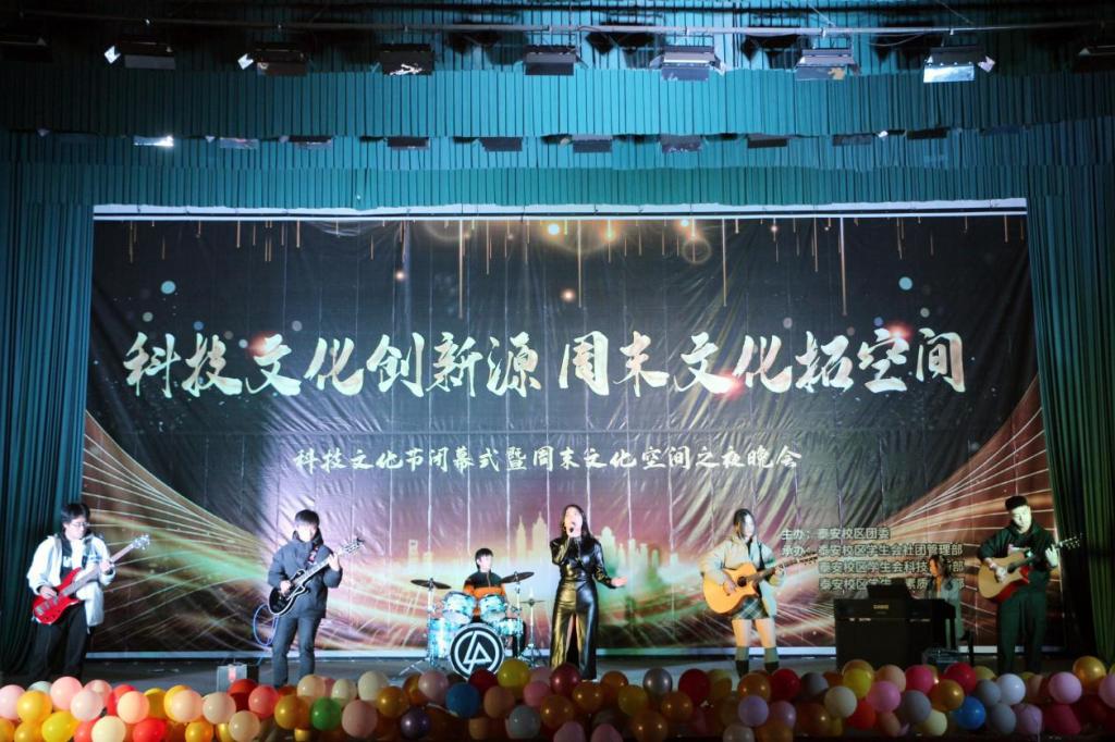 本次活动以“科技文化创新源,周末文化拓空间”为主题,对在本次科技文化节中表现突出的学生进行集中表彰。闭幕式现场,主持人依次宣读了本次科技文化节各赛事的获奖人员名单,为获奖代表进行颁奖,同时穿插节目表演。晚会紧扣科技强国,奋斗有我的主旋律,既有乐队原创歌曲《无论你身在何处》展示学生的青春朝气与活力,又有舞台剧《王女救恶龙》别出心裁,用反转的方式吸引观众,创新而又不失内涵。创新是一种拼搏,只有勇于拼搏、敢于拼搏才能成为最闪亮的星,活动在合唱《夜空中最亮的星》中落下帷幕。
