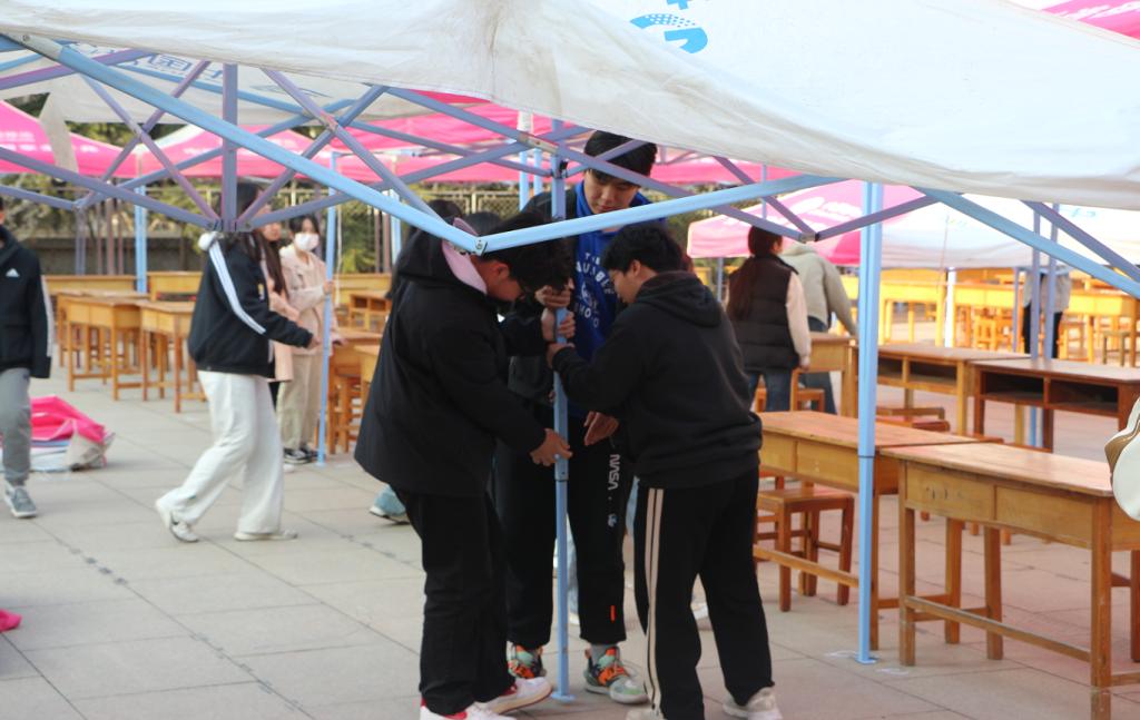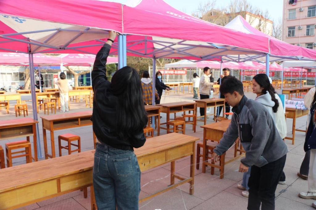 招聘会期间,志愿者们热情为来校招聘企业提供引导服务,为求职学生介绍招聘企业信息。志愿者们提前来到会场,进行精心布置。通过摆放帐篷桌椅、书写招聘信息、张贴宣传海报,为企业和求职者营造整洁、舒适、有效的沟通交流环境。同时,积极维持现场秩序,确保招聘会有序进行。招聘会结束后,志愿者们主动承担起帐篷拆卸及场地卫生打扫等工作,为招聘会圆满收场。