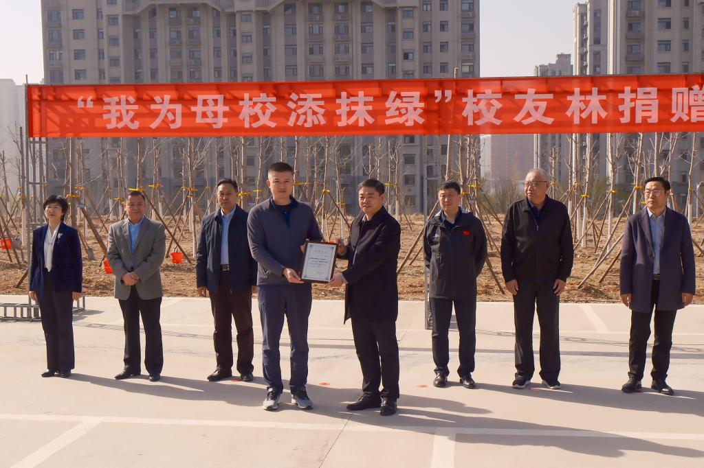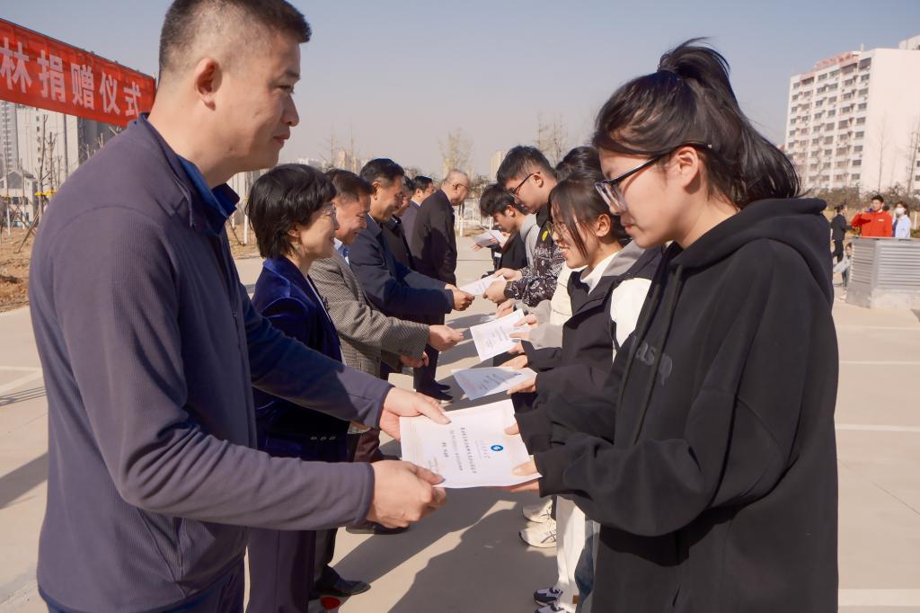 仪式上,徐方全向捐赠校友代表张庆波颁发了捐赠证书,并与校友代表共同为“校友林”纪念石揭幕。与会领导、校友代表为校友林落成剪彩,向在校生颁发了班级认领养护证书。