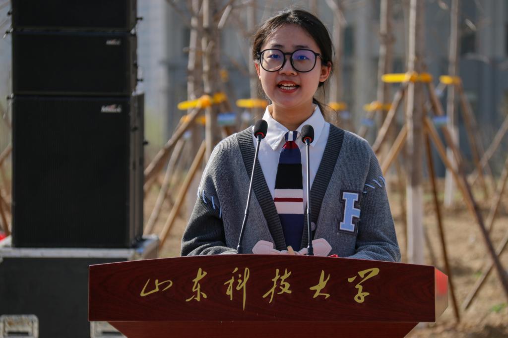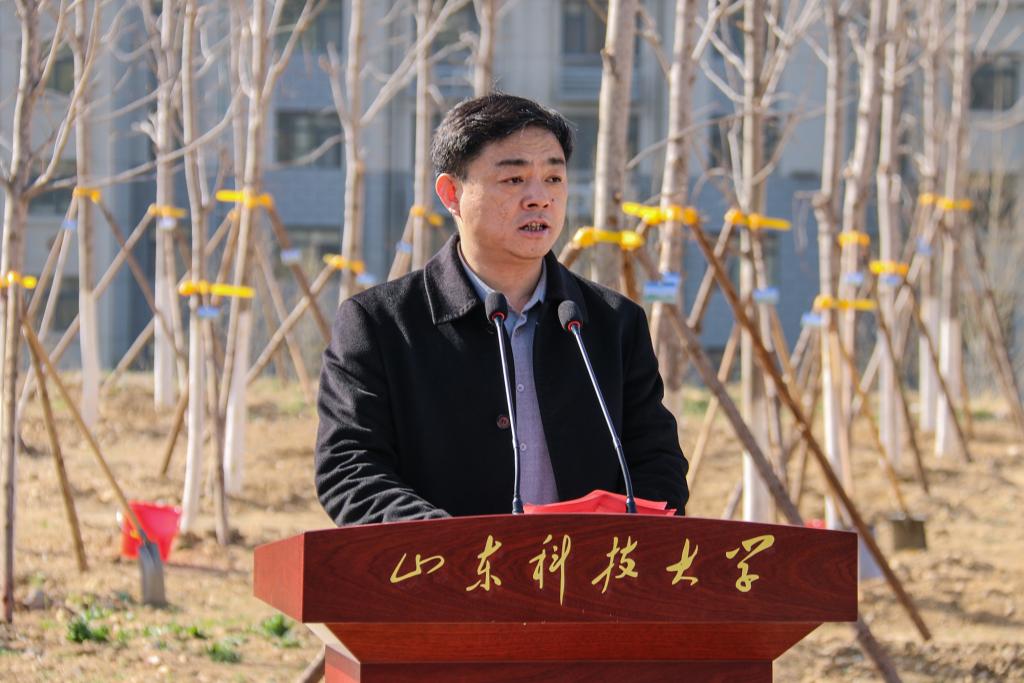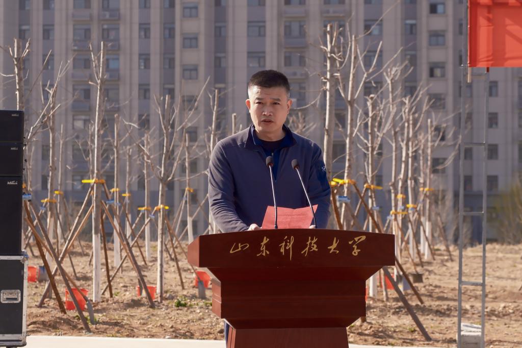 济南园林开发建设集团有限公司副总经理、建筑工程1997级校友张庆波代表捐赠校友致辞。他对校友林的落成表示祝贺,并表示母校是校友们永远的家,未来将与广大校友一起一如既往地支持母校的建设与发展。