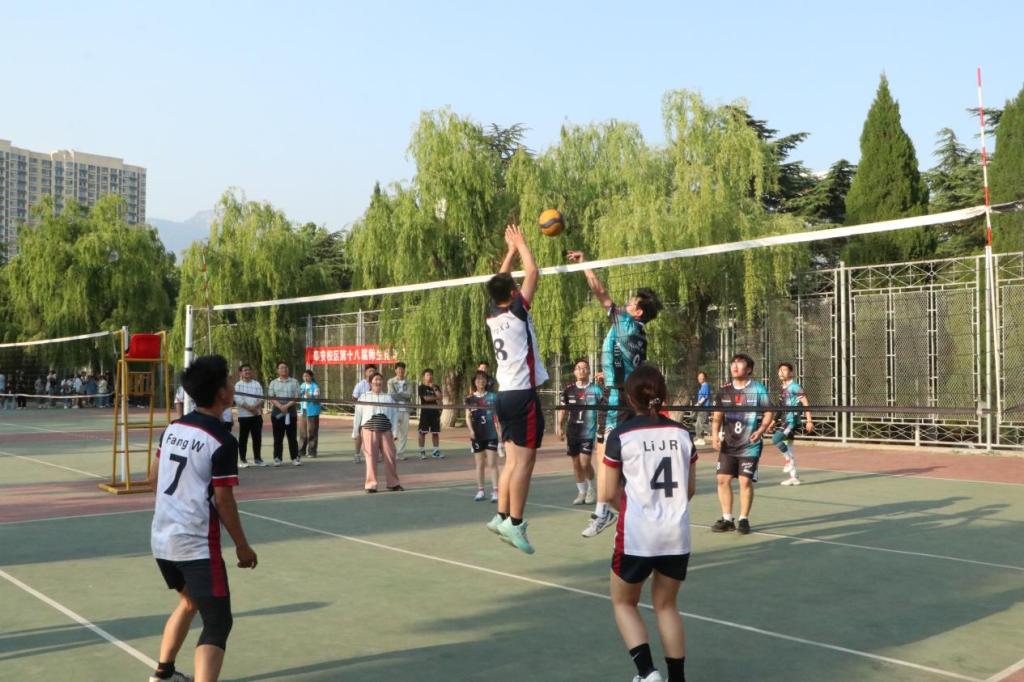 第十八届师生排球友谊赛于5月6日开赛,比赛得到了校区师生的高度重视和积极参与,东、西校园共报名参赛队伍23支,组织比赛50场。经过分校园近两周的激烈比拼,孙灿代表队和卢业美代表队分别战胜各自对手,将角逐总冠军,郭艳培代表队和刘帅杰代表队争夺三四名。总决赛赛场上,对阵双方队员发球精准,接球稳重,扣球有力,队员之间配合默契,强攻、快攻、吊球表现十分出色,传接配合精妙,快球隐蔽性强,背飞背快、短平快、时间差等战术球的精彩表现让观众叫好不绝。最终,卢业美代表队获得冠军,孙灿与郭艳培代表队分别获得亚军和季军,刘帅杰代表队获精神文明奖。