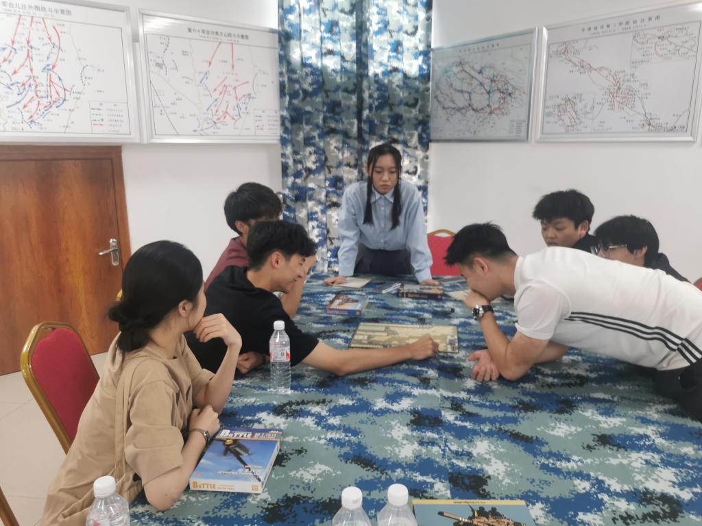 活动中,山东第一医科大学国防教育中心主任安文介绍了山东第一医科大学国防教育中心及兵棋推演中心的建设情况,以及手工兵棋推演和电子兵棋推演的使用方法、军事背景及国防教育的意义。在分组体验过程中,校区学生与山东第一医科大学强军社的学生进行了一对一交流,并亲身体验了95枪族全仿真模型、军事测绘模型和仿真迫击炮。