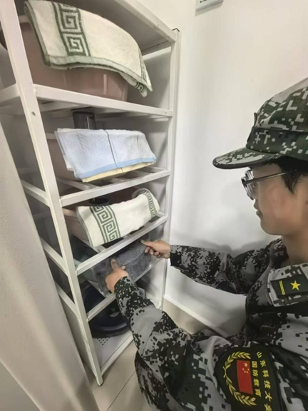 “出门看队列,进门看内务”,内务整理是军训的必修课,也是大学生的必修课之一。