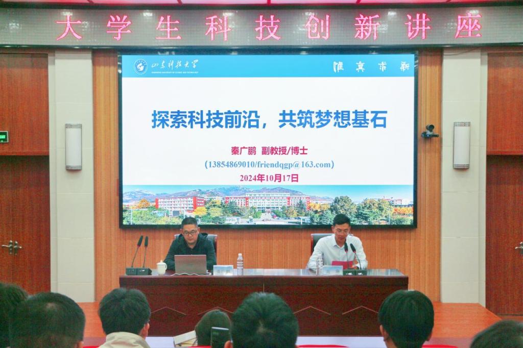 10月17日,第十四届大学生科技文化节系列活动之大学生科技创新讲座在西校园八角楼成功举行。本次讲座特邀科技处副处长兼泰安校区科研管理办公室主任秦广鹏教授进行授课。各学院学生代表等共170余人参加。讲座由校区团委老师高琳主持。