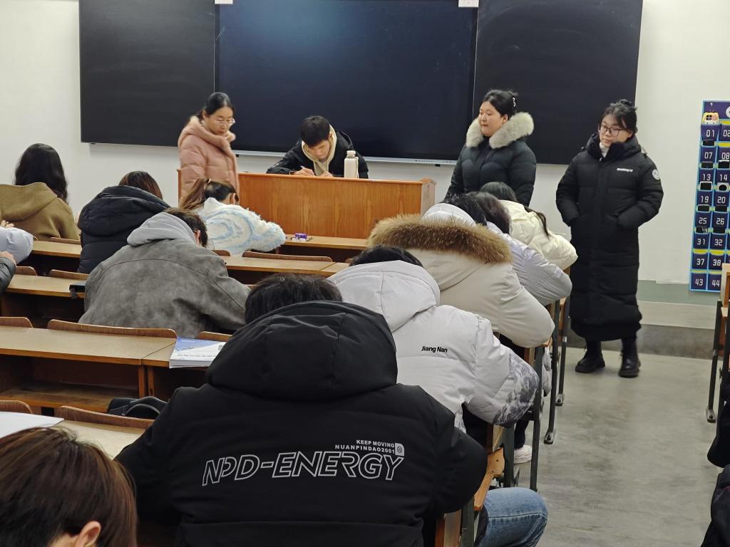 7:40和13:40,学生工作干部来到教学楼门口,对学生“提前10分钟进教室”情况进行督导检查,对7:50和13:50后进教室的学生进行提醒,对迟到的学生进行批评教育,督促学生树立良好的时间观念和按时上课习惯。