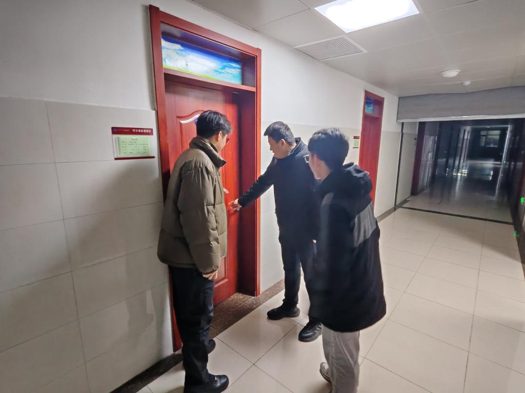 23:00,学团工作部组织住宿值班的学生工作干部会同物业人员对学生就寝情况进行检查,督促学生早休息,同时对不安全用电行为进行纠正,对打游戏影响学生休息的行为予以提醒或批评教育,为学生创造安全安静的学习和休息环境。