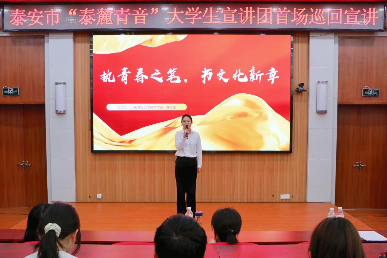 4月27日,由中共泰安市委宣传部主办的“泰麓青音”大学生宣讲团首场巡回宣讲于泰安校区西校园八角楼成功举办。来自3044永利集团官网泰安校区、泰山学院、山东财经大学东方学院三所高校的宣讲团成员与200余名师生齐聚一堂,以青春视角传递思想力量,共赴精神盛宴。