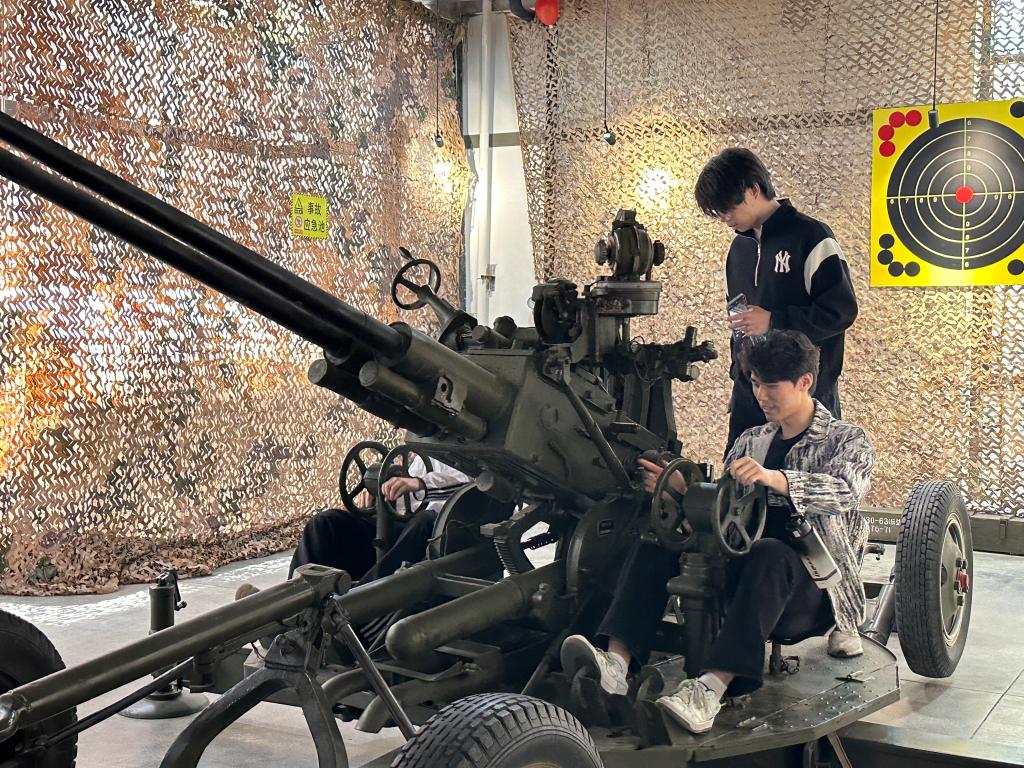 活动首站为户外“面对地图讲国防”主题教学,泰安市全民国防教育促进会创会会长、国防教育专家杜玉江担任主讲,他结合我国地缘政治与军事战略布局,深入剖析了我国国防防御体系与安全形势。作为出版《新中国兵器发展简史》等军事专著、策划军事影视作品的专家,他以专业视角阐释“强国必须强军”的时代内涵。随后,师生步入展馆,依次参观武器装备、革命历史与强军成就展区。讲解员通过实物展品与历史故事,重现人民军队从筚路蓝缕到迈向现代化的征程,学生们还亲身体验与操作了部分退役武器装备,直观感受国防科技进步。