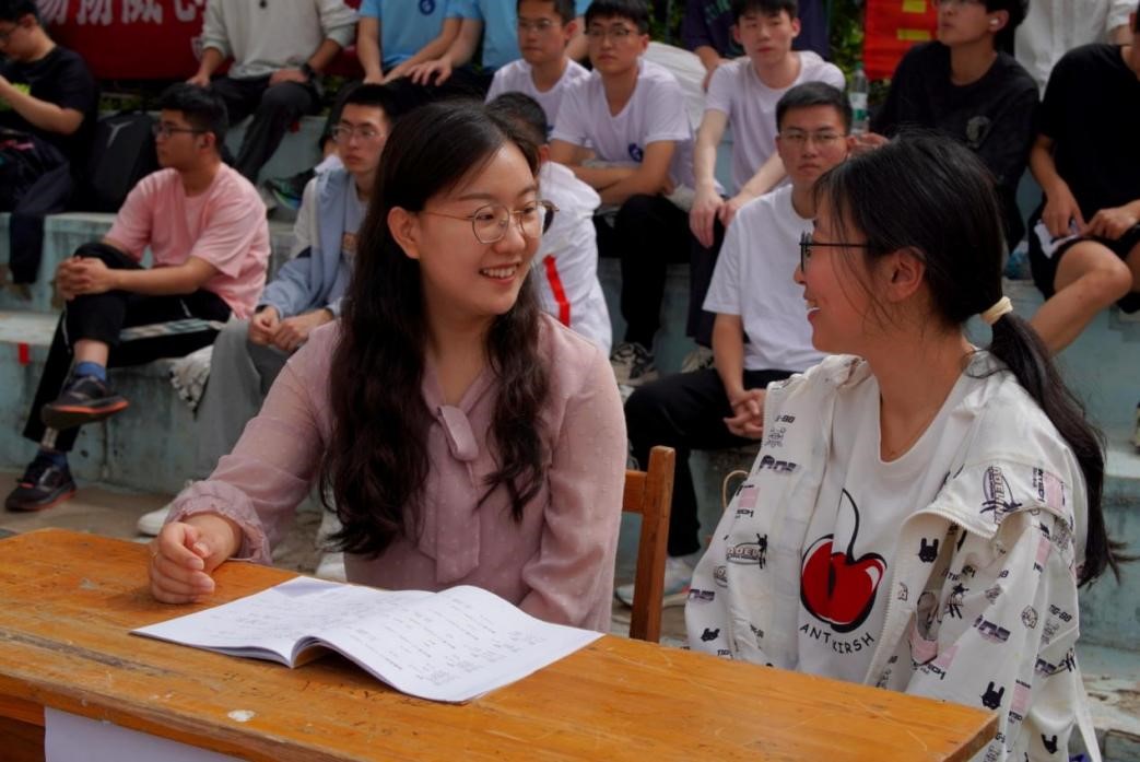 休息时间,蔡婧婧为运动员们及时递上矿泉水和士力架,轻声叮嘱运动员们注意休息,“表现的太棒了,赶紧补充下能量吧!” 她融入班级群体,与同学们谈心谈话,倾听交流日常生活和学习中的想法。此时,她是老师,更是挚友。那细腻关怀,将温暖与力量深植同学们的心底。