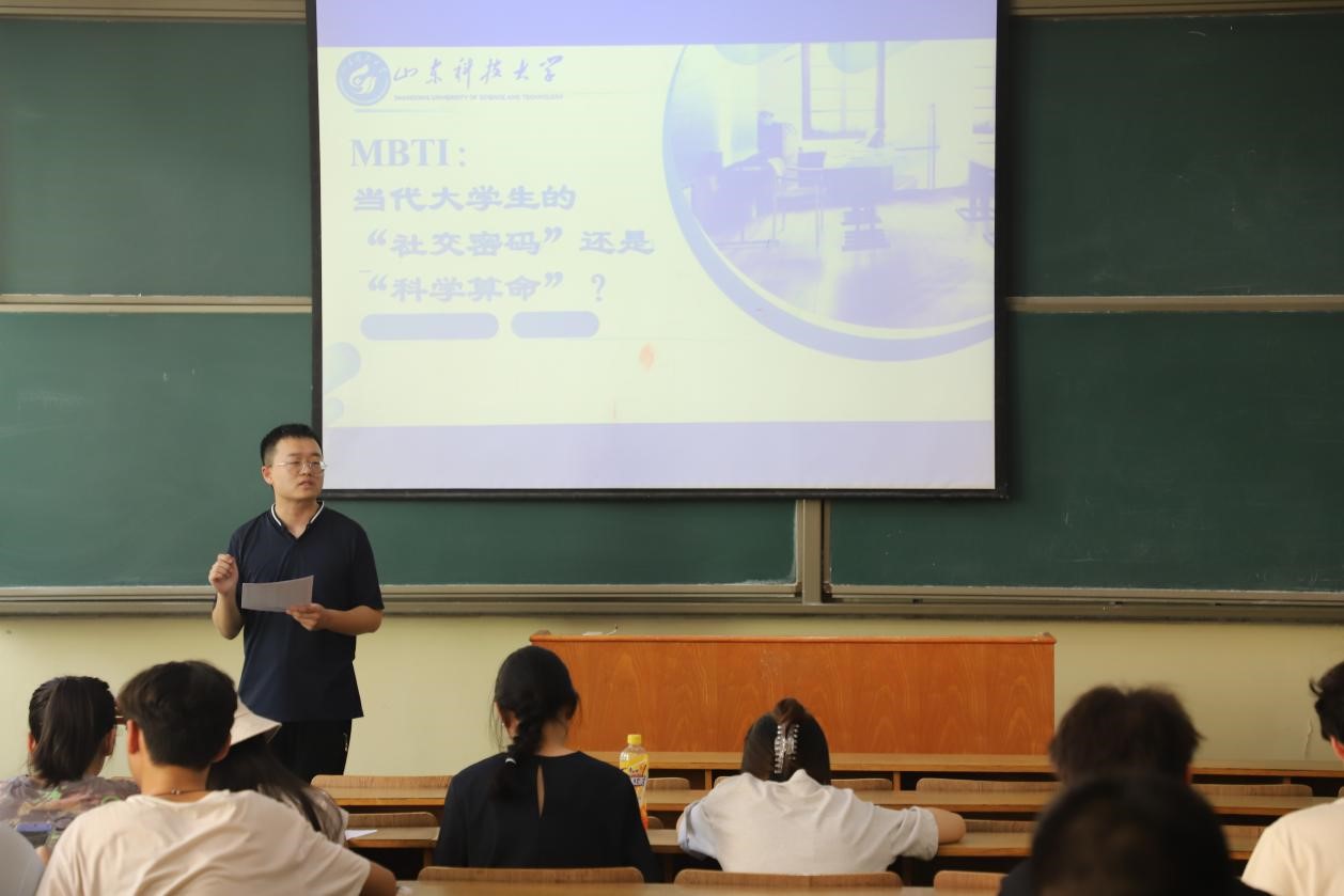 5月21日下午,由校区学团工作部主办、大学生心理健康协会承办的心理健康知识讲座在东校园5号教学楼顺利开展。本次讲座以《MBTI:当代大学生的“社交密码”还是“科学算命”?》为主题,由智能装备学院辅导员孙斌老师担任主讲。