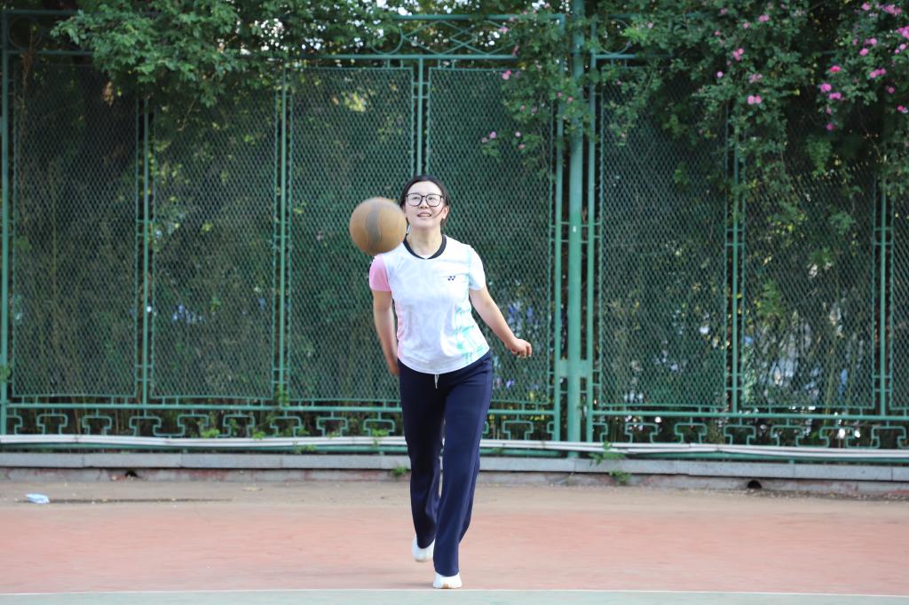 清晨,天边泛着鱼肚白,何颖已经换上运动服,站在排球队伍的最前方。“调整呼吸,跟着节奏!”她步伐轻盈,带领队员进行慢跑热身。晨风掠过发梢,她的目光始终关注着队伍——谁脚步乱了,谁需要鼓励。这条跑道,像极了她的日常:用耐心陪伴,为学生的成长蓄力。