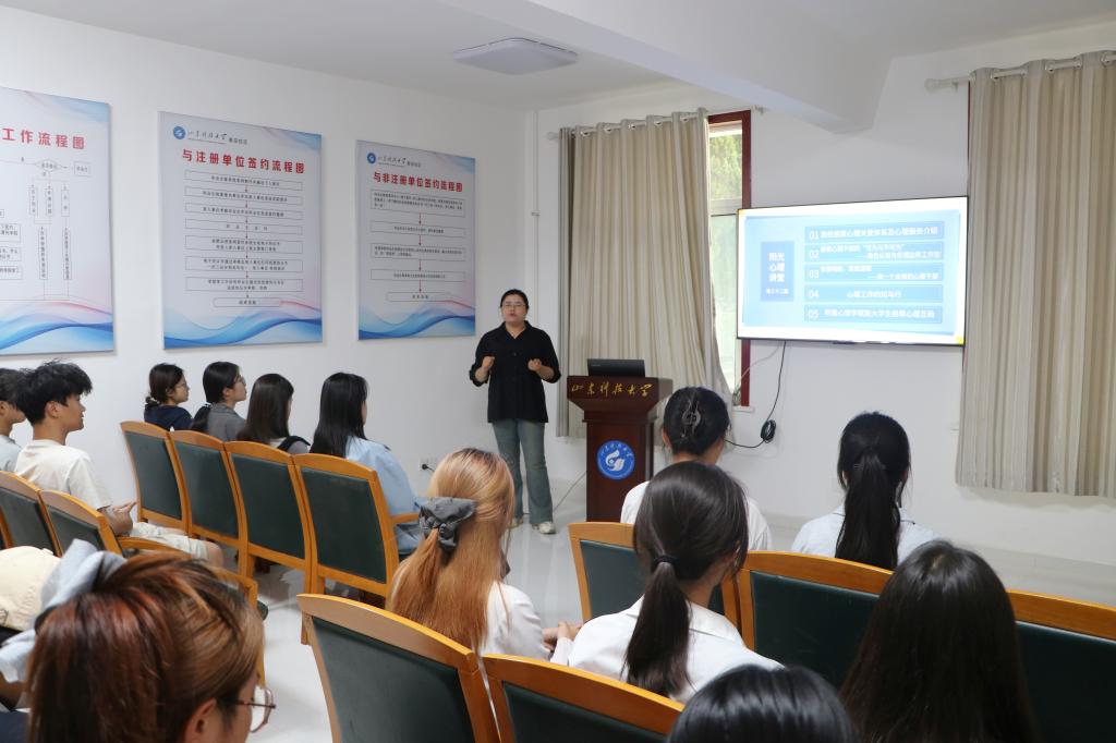 成长营首阶段围绕心理委员的核心职责开展系统培训。大学生心理健康教育中心主任张燕为同学们系统讲解了心理困难学生的识别方法、助人秉持的态度和技巧等内容,通过案例分析等互动形式,帮助他们能够在日常生活中敏锐地察觉到同学的心理变化,及时给予关注和帮助。同时她对大家提出了工作要求,强调一方面要注重自我心理调适,保持积极健康的心态;另一方面要切实履行职责,做好班级同学的“心理灯塔”,成为同学们心理健康的守护者,搭建师生沟通桥梁。随后同学们来到沙盘游戏区、情绪宣泄区等心理功能室进行参观体验,在老师的现场演示与细致讲解下,亲身感受心理设备的专业性和趣味性。活动现场氛围热烈,同学们踊跃提问、积极互动。通过此次体验,不仅打破了大家对心理咨询的固有认知,消除了陌生感与距离感,更让大家对如何引导同学寻求专业心理帮助有了更直观的认识。